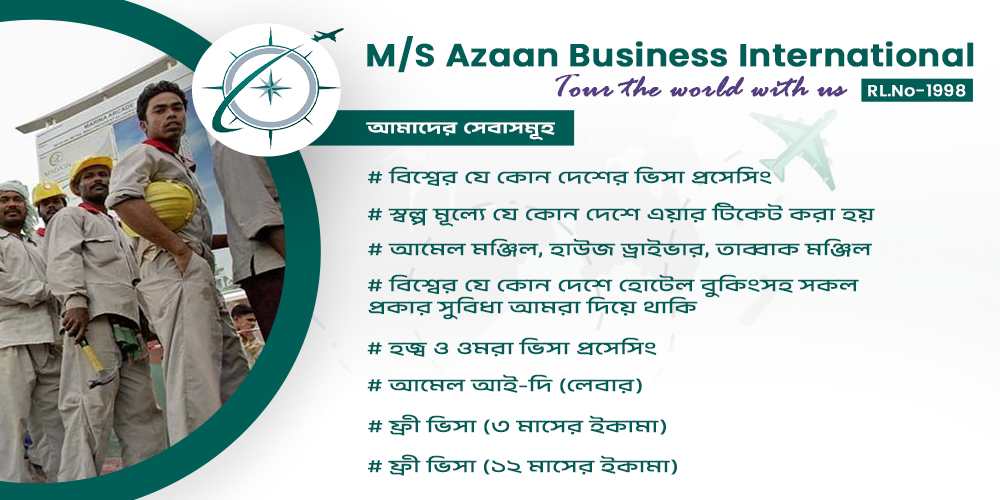 Azaan Business International Recruiting License No. RL 802 We have been providing recruitment of skilled male and female workers in various Middle East countries including Saudi Arabia, Malaysia, Dubai, Jordan, Kuwait within a short period of time with utmost sincerity, trustworthiness, honesty and integrity.
