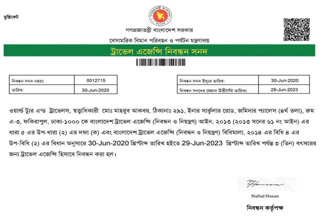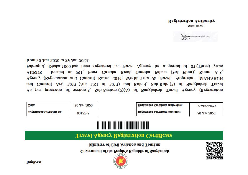 গণপ্রজাতন্ত্রী বাংলাদেশ সরকার অনুমোদিত রিক্রুটিং লাইসেন্স নং আর এল-1998